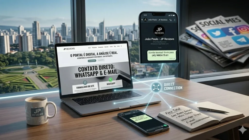 A energia do JP Reviews está 100% canalizada no site. É aqui que a mágica acontece. Não queremos que você se distraia com notificações fúteis; queremos que você entre no site, encontre a resposta exata para a sua dúvida de compra, resolva o seu problema e volte para aproveitar a sua vida offline.